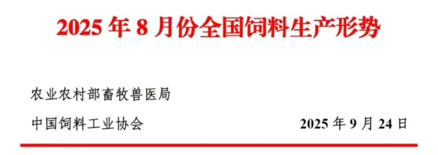 2025年8月,全国工业饲料产量2936万吨,环比增长3.7%,同比增长3.8%。其中,配合饲料、浓缩饲料、添加剂预混合饲料同比分别增长3.4%、8.3%、7.9%。饲料产品出厂价格同比呈下降趋势,畜禽配合饲料、浓缩饲料出厂价格环比以增为主,添加剂预混合饲料出厂价格小幅下降。饲料企业生产的配合饲料中玉米用量占比为32.9%,配合饲料和浓缩饲料中豆粕用量占比为14.3%。