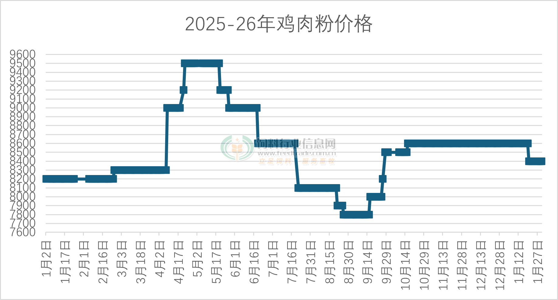 发表时间:2026-02-02 11:12来源:慧通数据 本月豆粕持续震荡调整。虽然饲料养殖企业节前备货需求持续,大豆及豆粕库存下降,但仍处于中等偏上水平,供应宽松令豆粕现货上涨乏力,继续维持窄幅波动。截止目前豆粕现货均价3150元/吨,较上月底稳定。 鱼粉市场方面,1月份鱼粉先跌后涨,进口秘鲁超级蒸汽鱼粉价格先下跌至16400-17000元/吨,主要由于持货商顺价。之后鱼粉价格再次上调至16700-17000元/吨。虽然南方地区少量新季鱼粉到港,但到货量有限,库存仍缓慢下降;同时,鱼粉持货商持货集中,以及外盘挺价支撑持货商心态,并且年前存在采购需求等支撑下,局部鱼粉价格受到支撑。 在相关蛋白原料豆粕保持震荡调整,鱼粉最终上涨背景下,肉骨粉价格稳定,而鸡肉粉价格则有所下跌。 肉骨粉价格持稳、鸡肉粉承压下跌 据了解,我国澳大利亚肉骨粉报价为4300元/吨,稳定;而我国美国鸡肉粉价格根据不同品质参考报价下跌,价格在8400元/吨,跌200元/吨,最终实际成交议价为主。